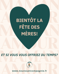 NOTRE « spéciale »: et si vous (vous) offriez plutôt… du temps ? Si vous souhaitez offrir à la maman de votre famille une journée de repos ou une soirée en amoureux, ou resto, cinéma ou pour un spectacle, pensez à faire appel à une baby-sitter ou à une nounou à domicile.