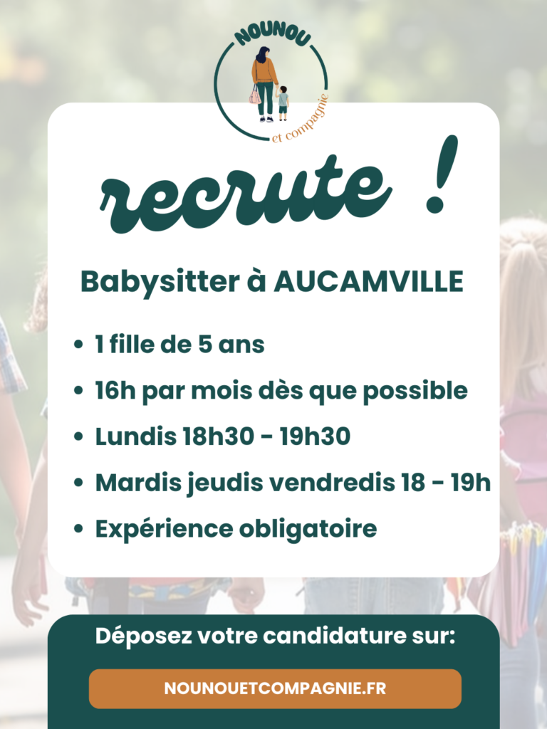 Cette offre d’emploi est peut-être pour vous! Nous cherchons un.e nounou à domicile pour une petite fille de 5 ans dont la famille vit à Aucamville (secteur Launaguet, Fenouillet, Blagnac, L’Union… au nord de Toulouse) pour des sorties d’école en semaine.